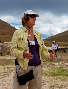Amy standing in front of another group of moai. These statues always faced the land; excavations have shown the previous existence of groups of houses occupied by priests and high officials.