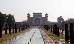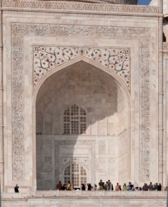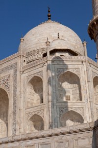 Early the next morning, we traveled by bus 4.5 hours from Jaipur to Agra and settled into our hotel. That afternoon we visited the Taj Mahal, built by the Shah Jahan in honor of his favorite wife, Mumtaz Muhal who is contained within a tomb in the middle of the interior courtyard. The Shah is entombed beside her in a larger tomb.
